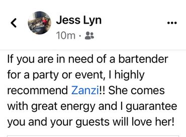 My name is Zanzi Jackson and I am a licensed & certified mixologist & bartender. I graduated from Mixology & Wine Institute in Cherry Hill, NJ July 2014, where I received my license in Mixology. I am certified to safely serve liquor to the public with NJ TIPS, DE TIPS & PA RAMP certifications. I also completed Spiked Delights Mobile Bartending Training Course, August 2022. I have been actively working in the field for over 10 years and I LOVE what I do.